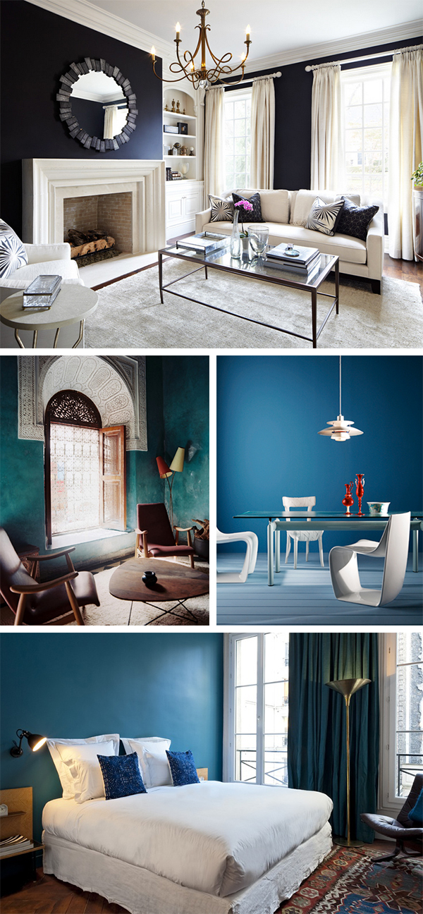 A ideia mais comum e ousada de usar o azul petróleo na decoração é para valorizar as paredes. Combina com branco, ou criando um contraste com tons mais claros de azul, o resultado é sofisticado e cheio de personalidade. Porém, é preciso tomar cuidado para não exagerar no uso, uma vez que essa é uma cor escura e pode acabar diminuindo a sensação de espaço e deixando o ambiente muito escuro.