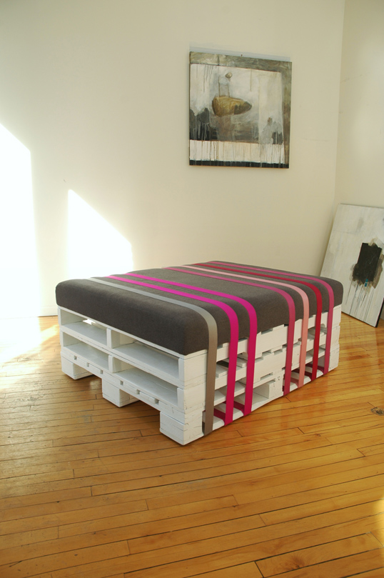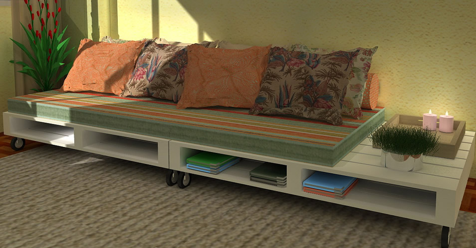 Para fazê-lo é muito simples, basta conseguir um pallet do tamanho que você quiser e investir em uma nova composição. O primeiro passo é lixar a madeira para tirar qualquer imperfeição. Depois disso é hora de pintar. A tinta acrílica é a recomendada para esse tipo de trabalho e uma dica para facilitar é passar um fita crepe nas partes que você não quer pintar, assim não corre o risco de borrar.
