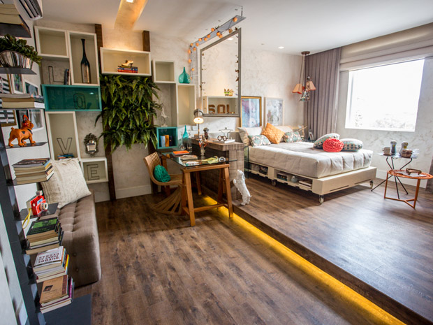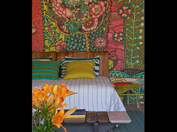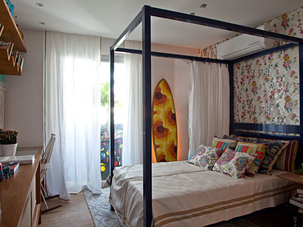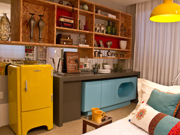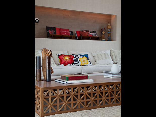 Outro detalhe importante que combina muito com o clima dessa época do ano são as cores. Você pode inseri-las em casa de duas formas: nos detalhes, através de almofadas floridas e estampadas ou objetos de cores e tamanho diferentes na estante, e também de uma maneira mais ousada, apostando em móveis e acessórios maiores de cores chamativas. Ambas são boas ideias, mas é preciso ter cuidado para evitar o exagero e acabar sobrecarregando os espaços.