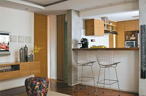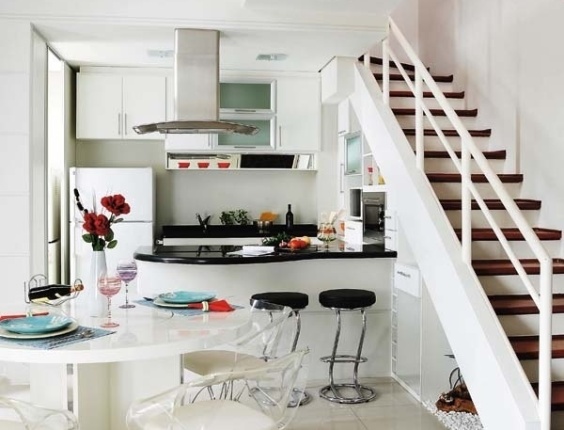 Por ficar muito exposta, essa cozinha demanda uma atenção especial na hora de decorar. Para evitar aquela aspecto bagunçado, o ideal é apostar em armários e prateleiras. Assim, tudo fica bonito e bem funcional – uma ajuda para quem cozinha. E falando em funcionalidade, uma cozinha americana não pode ficar ser uma coifa bem potente. Caso contrário, a casa inteira ficará cheirando a gordura.