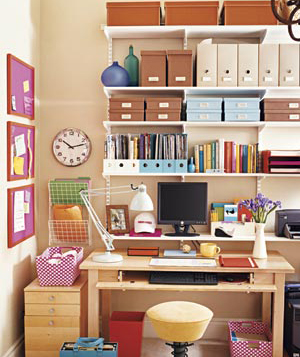 Elas devem permitir que os seus pés fiquem apoiados no chão e o antebraço na mesa, mantendo a coluna reta. Quanto aos objetos que você precisa distribui-los de maneira que todos fiquem acessíveis para que não haja a necessidade de deslocação a todo o momento. Para a organização do ambiente o mais indicado são os nichos e prateleiras. Porém, se o home office for montado na sala e não houver espaço para tal, opte por gavetões fundos na mesa.