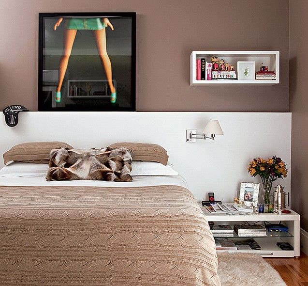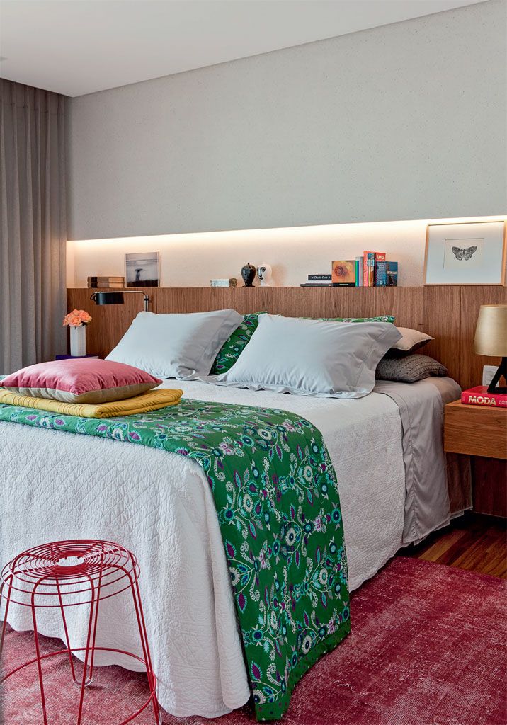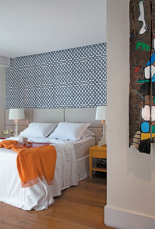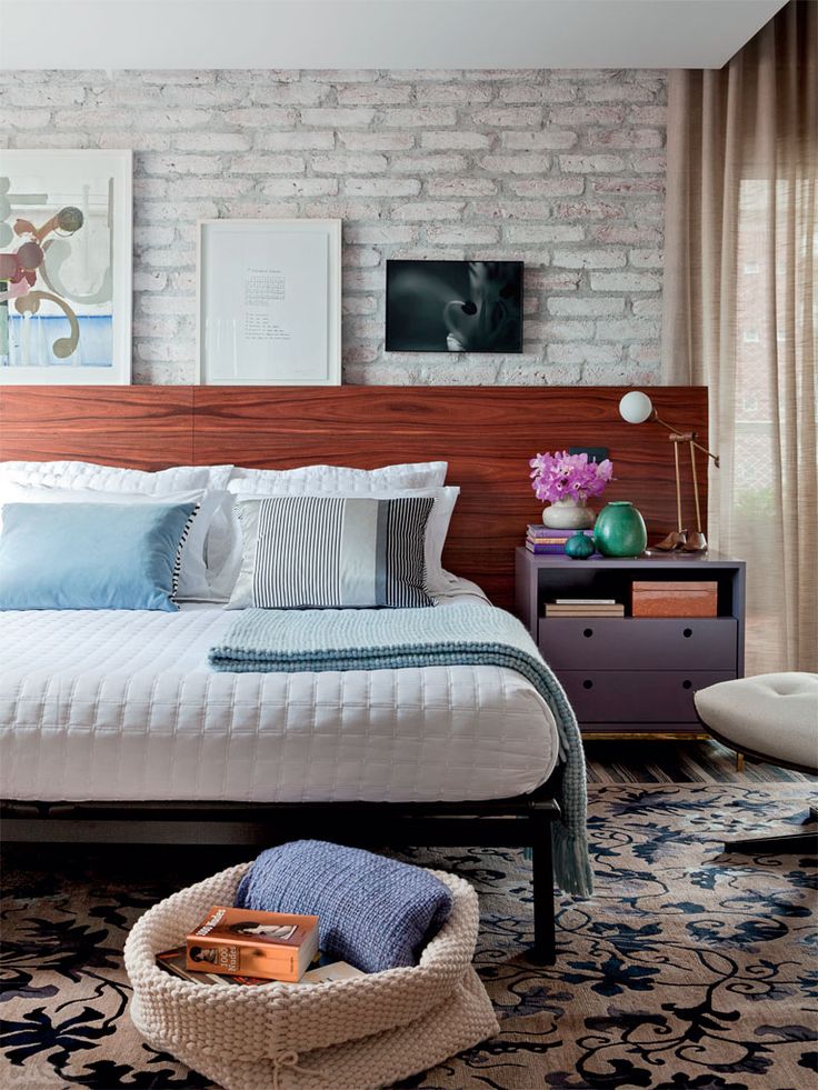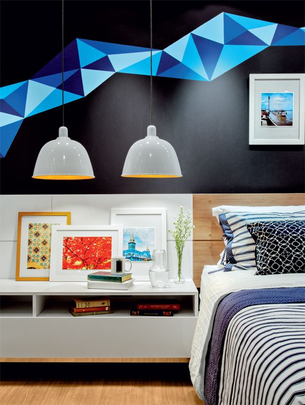 Outra ideia que tem feito muito sucesso na decoração dos quartos de casais é a composição diferente para cada lado da cama. Sem medo e com muito desapego à simetria, você pode escolher um criado-mudo, um abajur e muitos outros objetos bem diferentes para cada extremidade do móvel. A ideia é deixar bem marcado que lado é de quem.